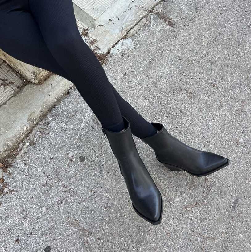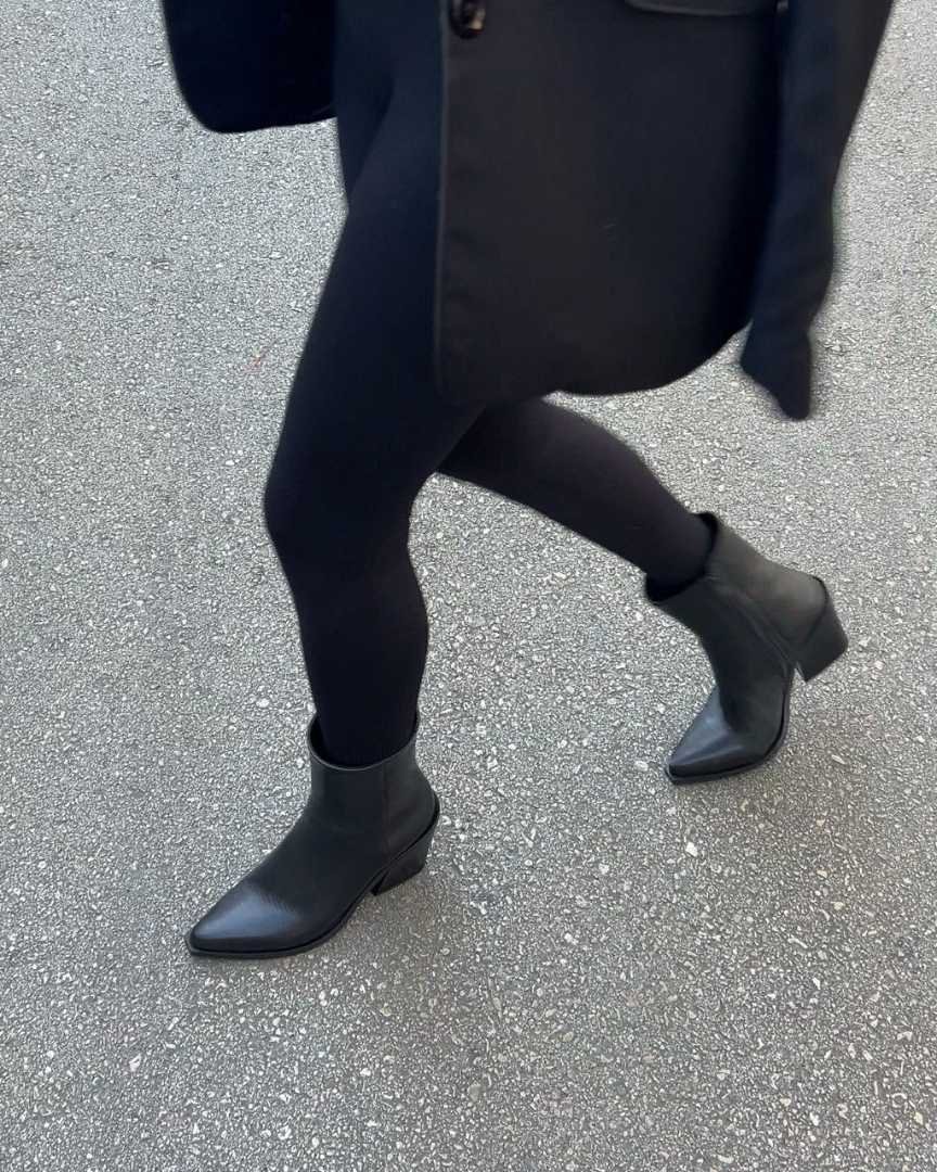 Sleek mid-heel ankle boots crafted from smooth black leather, blending timeless elegance with everyday comfort. A modern, Western-inspired ankle boot designed for confident style through every season. Perfect for FW 2026.