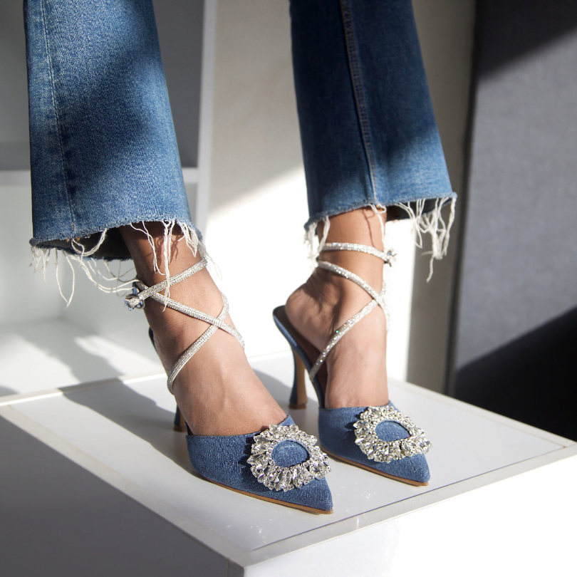 Crafted in beirut, these denim heels offer ultimate comfort and style. Elevate your fashion game with our shoes exquisite design.