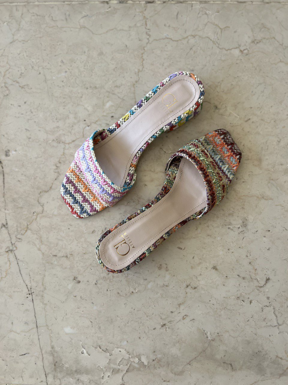 Slip into effortless charm with our handcrafted Elaya mule , designed with a vibrant woven wave pattern and a comfortable 3cm block sole. These open-toe mules combine laid-back ease with bold textures, perfect for sunny days, city strolls, or vacation getaways. Lightweight, breathable, and full of personality, they’re your go-to summer essential.