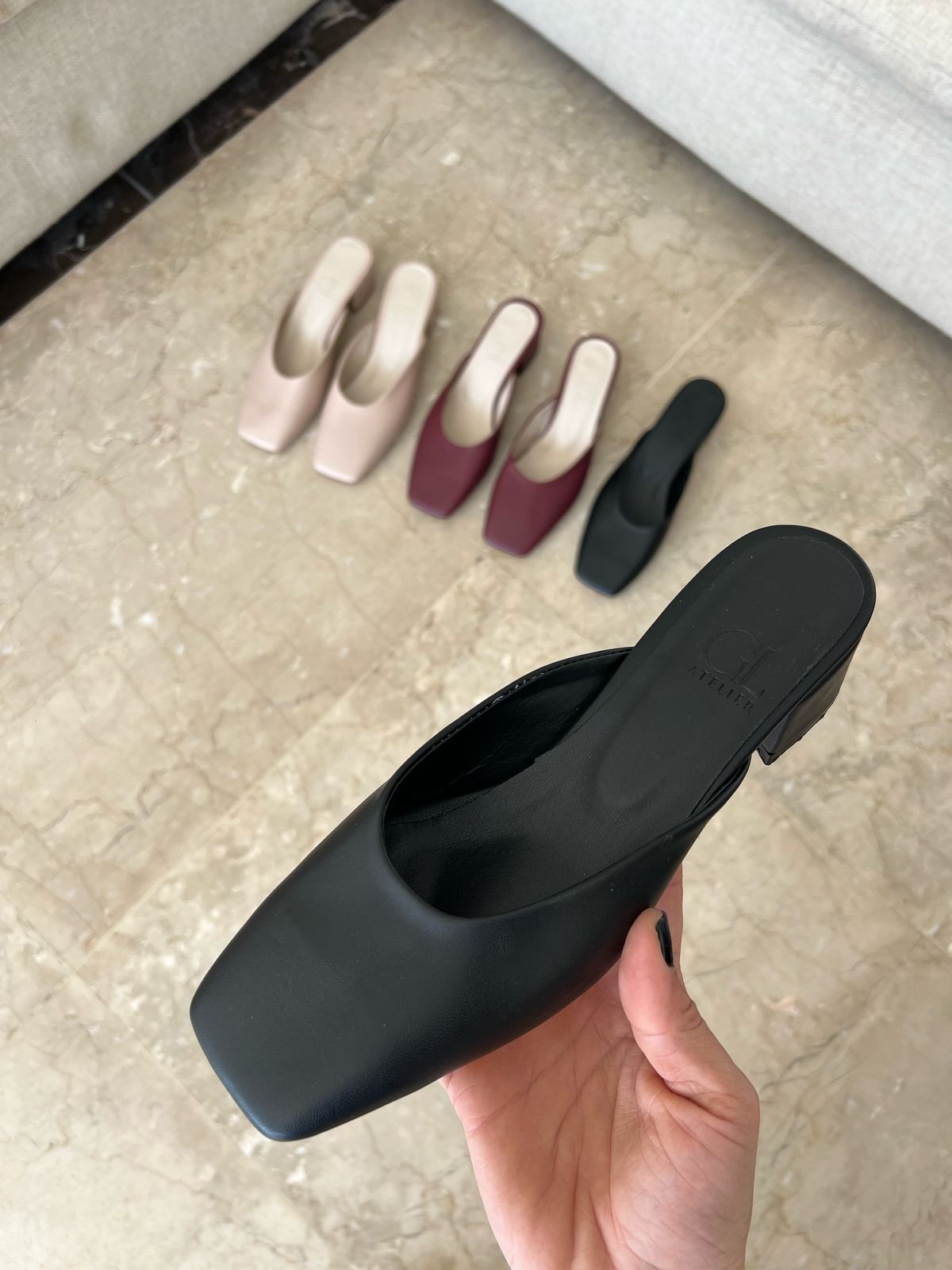 Crafted from premium smooth leather, these square-toe mules redefine effortless sophistication. Designed with a sleek, backless silhouette, they feature a sturdy 3cm block heel wrapped in matching leather for subtle elevation. The soft leather lining ensures all-day comfort, while the durable leather outsole provides lasting wearability. Available in classic black, elegant beige, and rich burgundy, these versatile mules seamlessly transition from day to night, making them a timeless addition to any wardrobe.