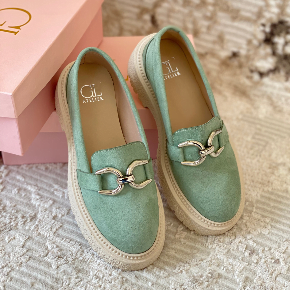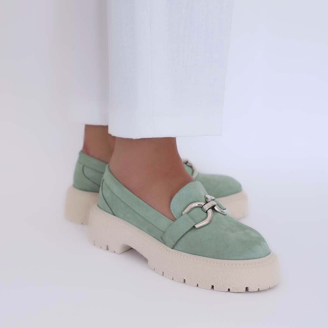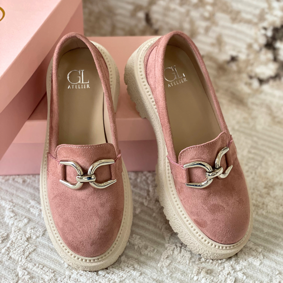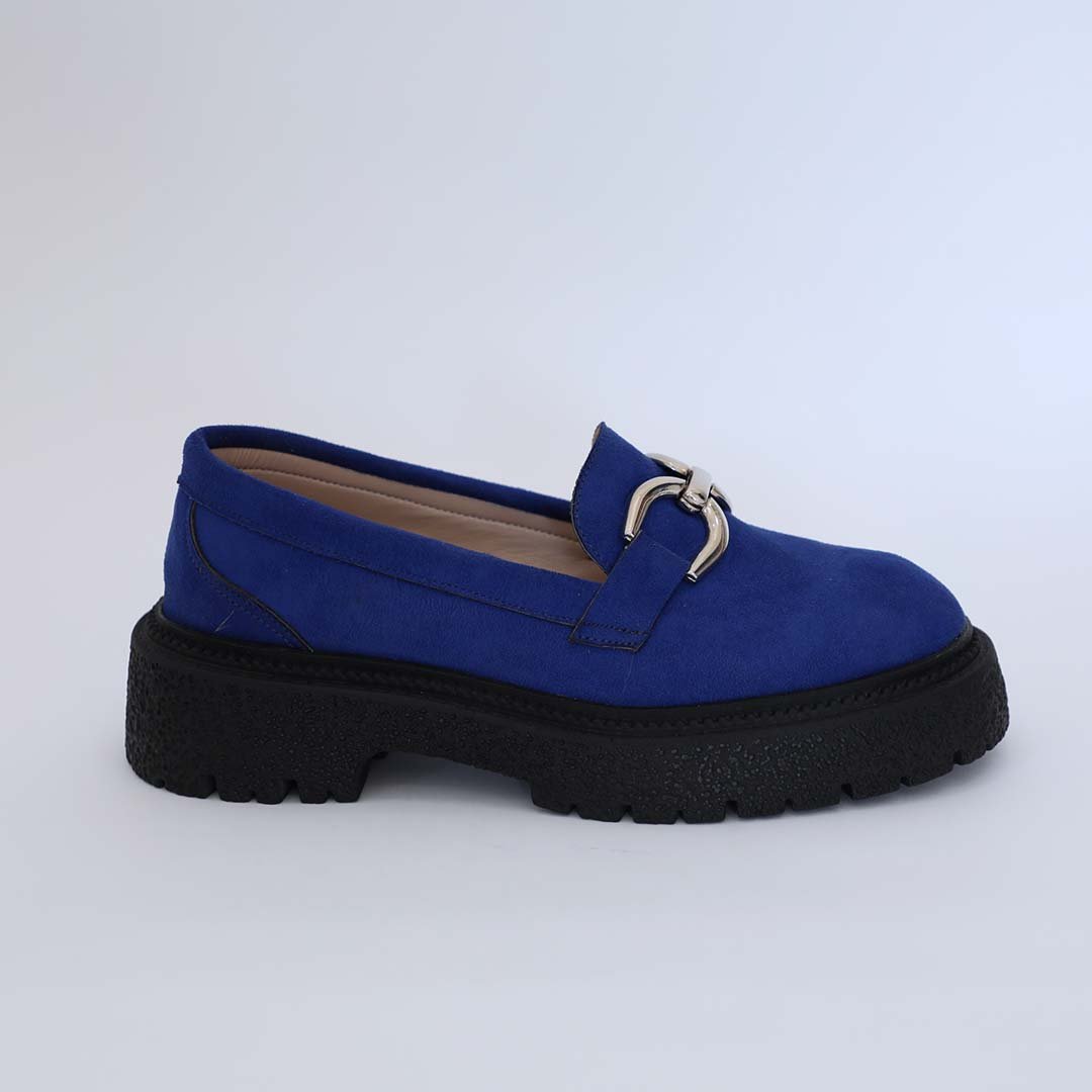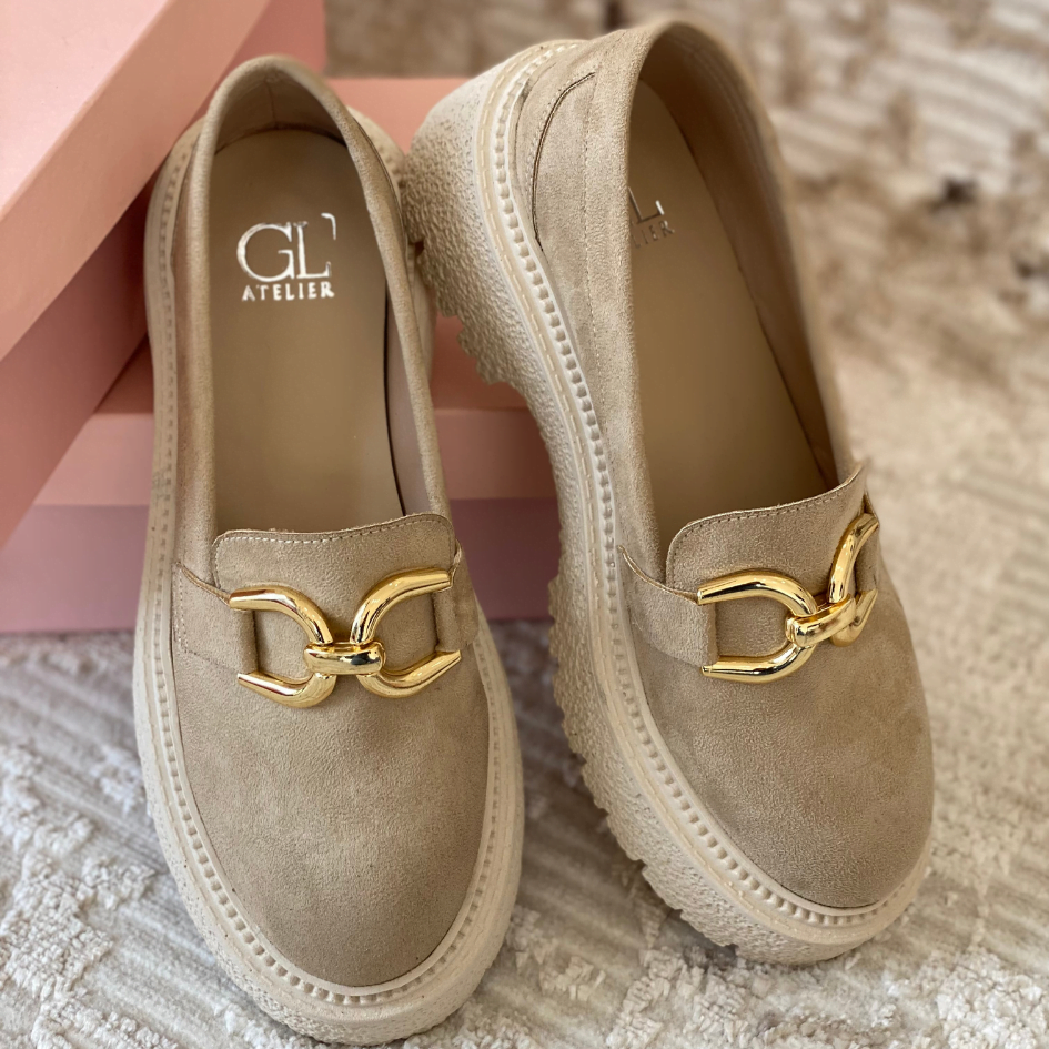 Made with suede, chain detail, and chunky track sole.