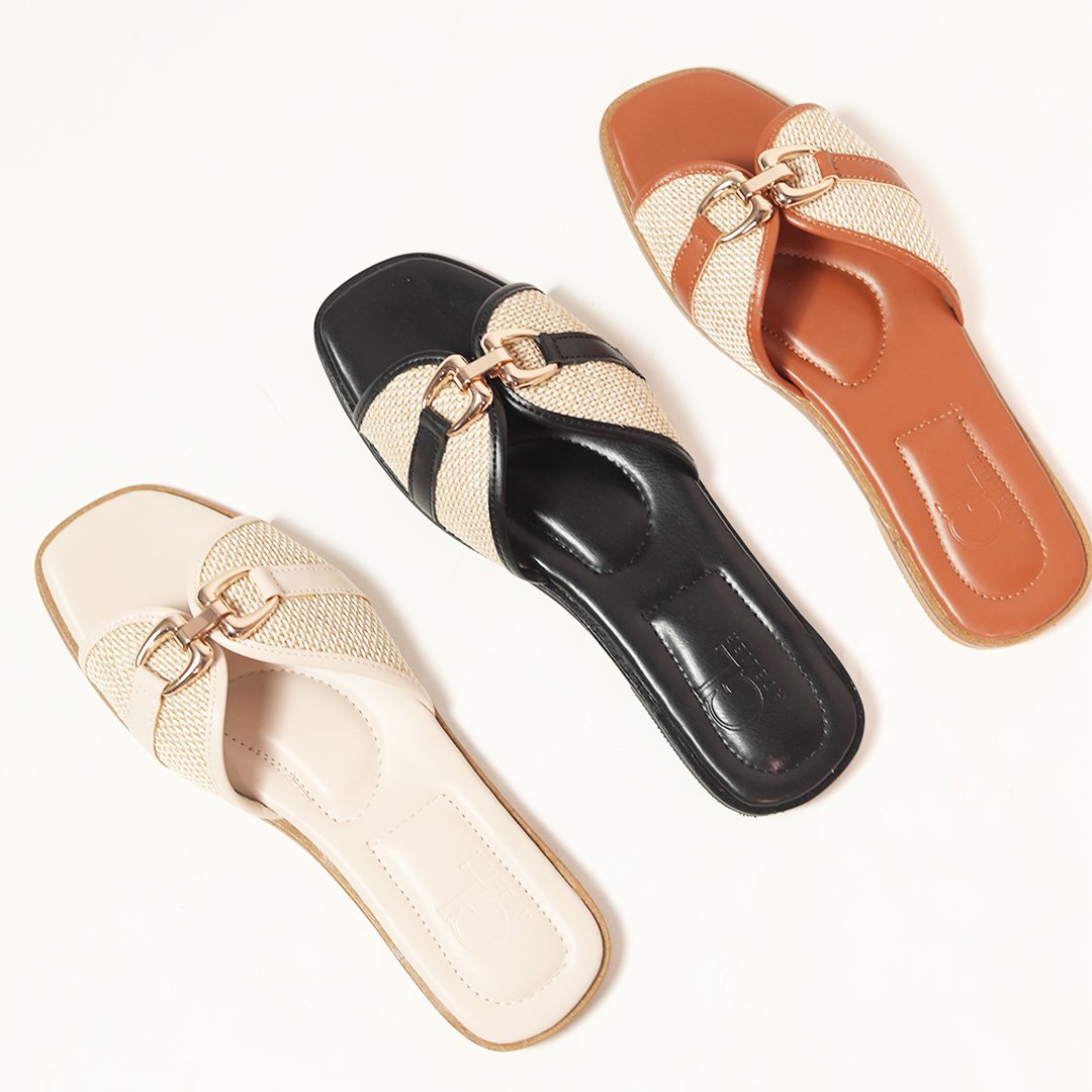 Elevate your summer style with our elegant flats, featuring a chic jute top and refined buckle detailing. Lightweight and breathable, they offer all-day comfort and versatile elegance for any occasion.