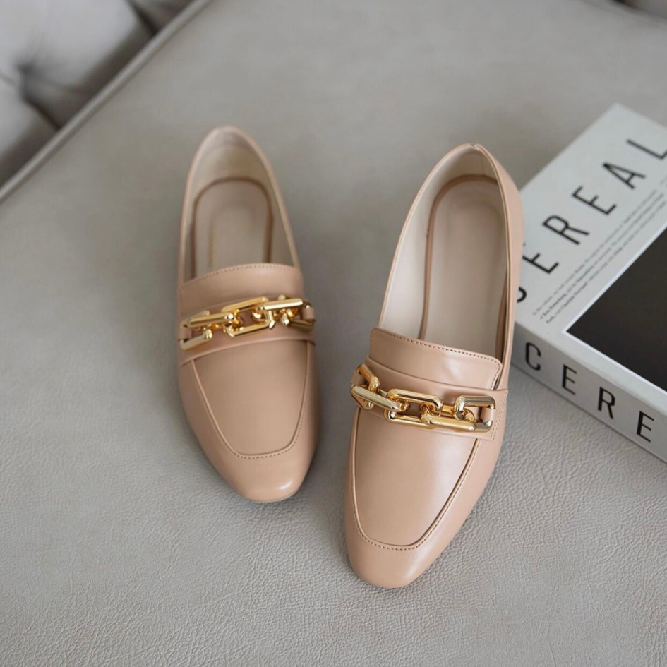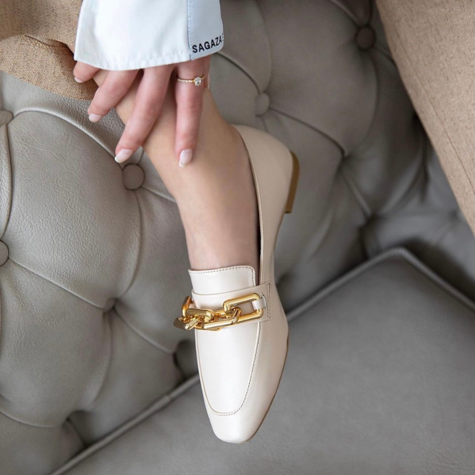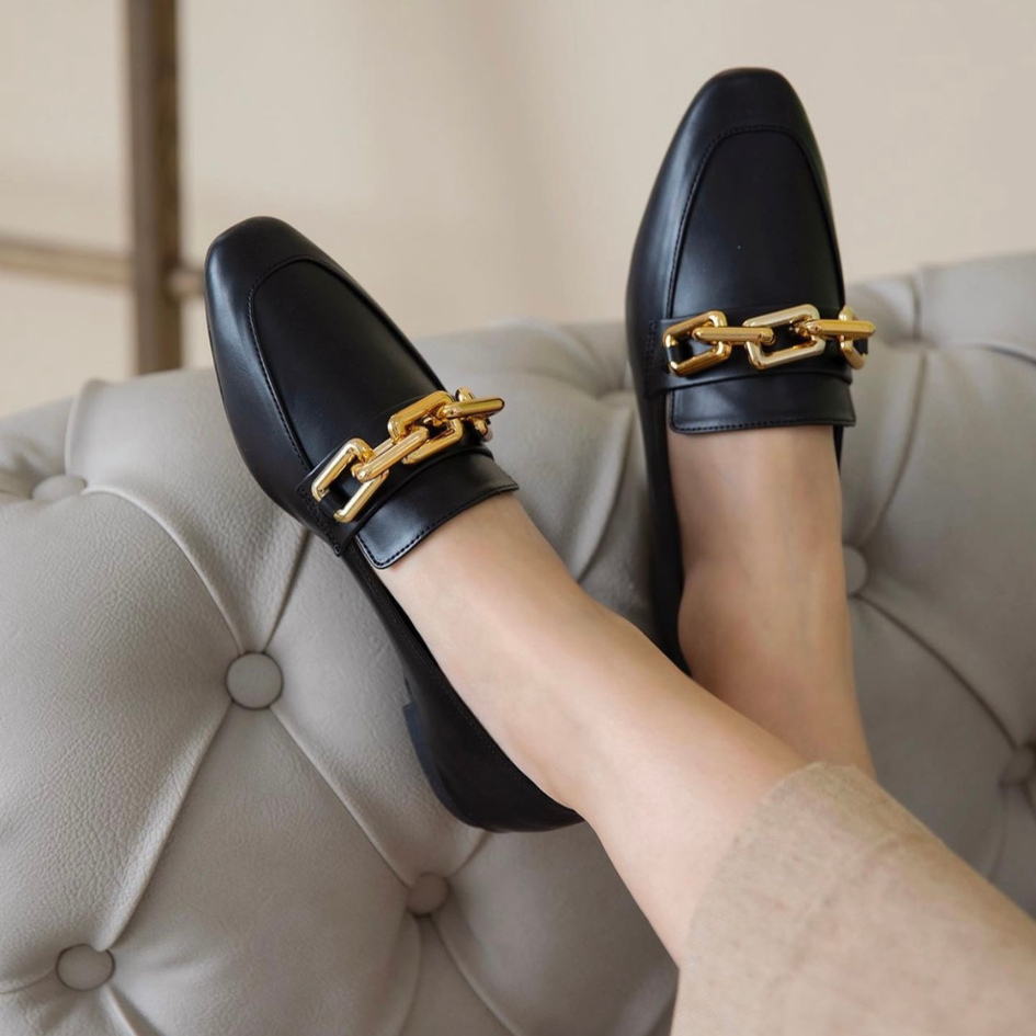 Kandi Loafers, features a gold chain embellishment.