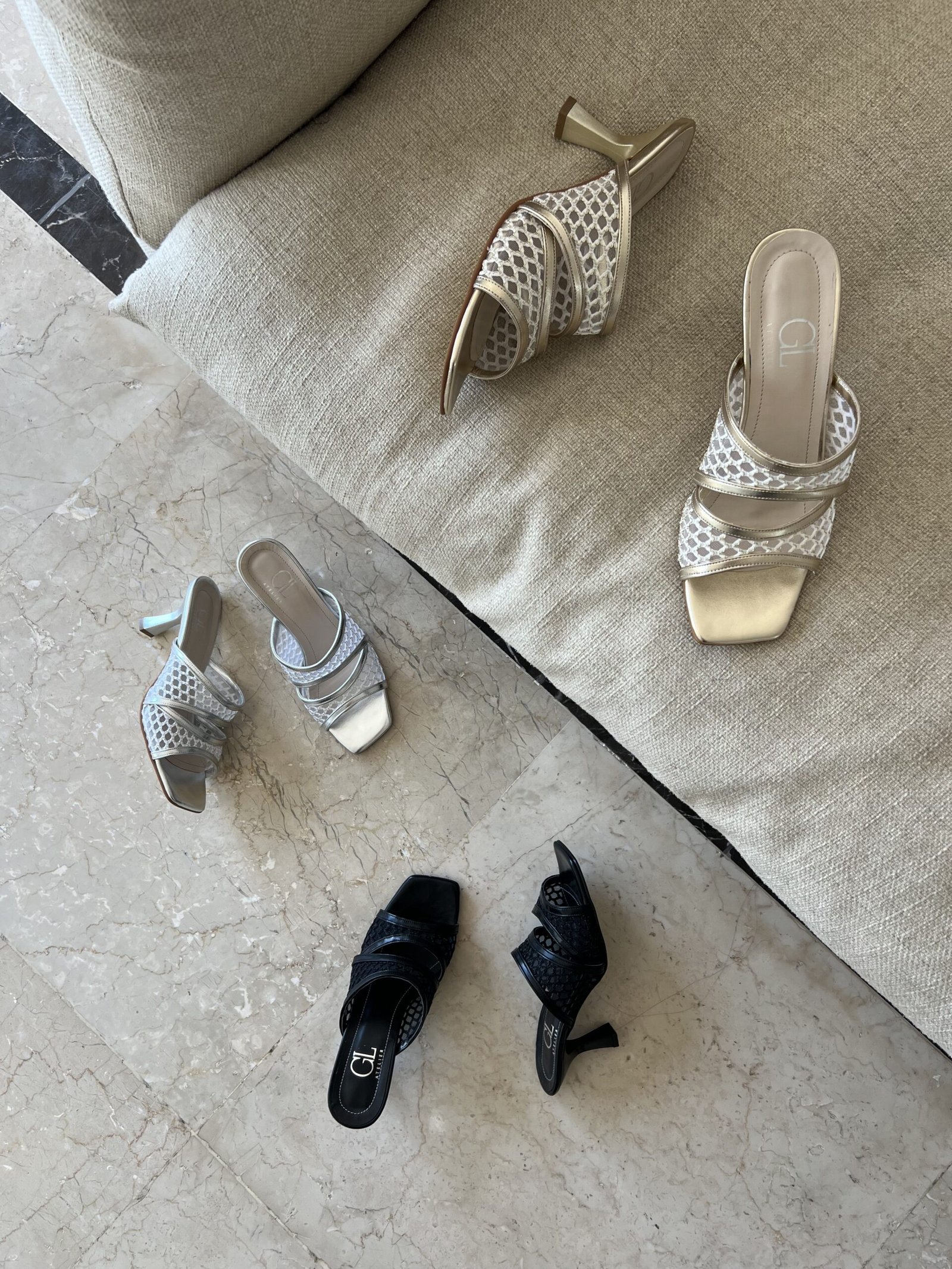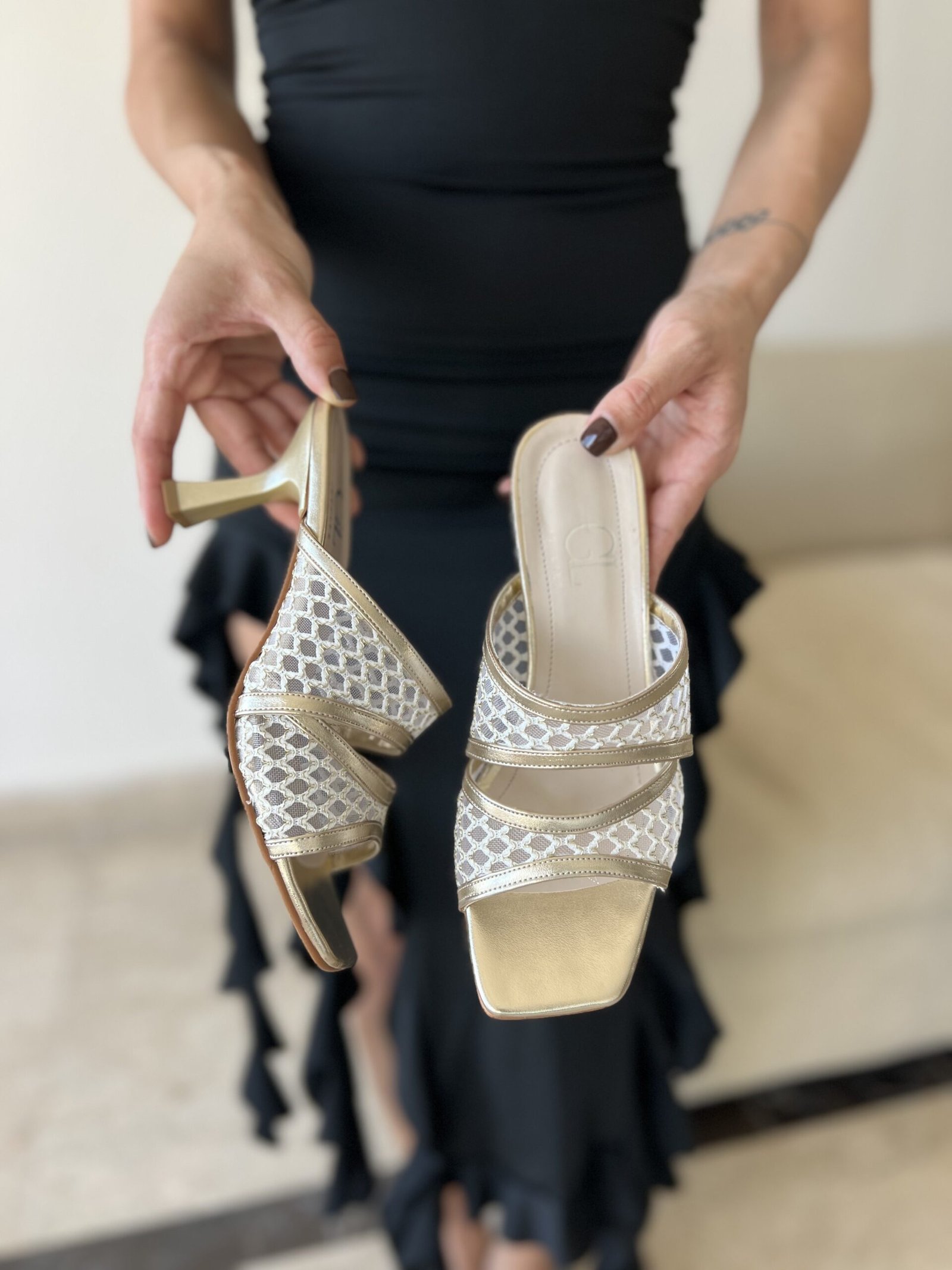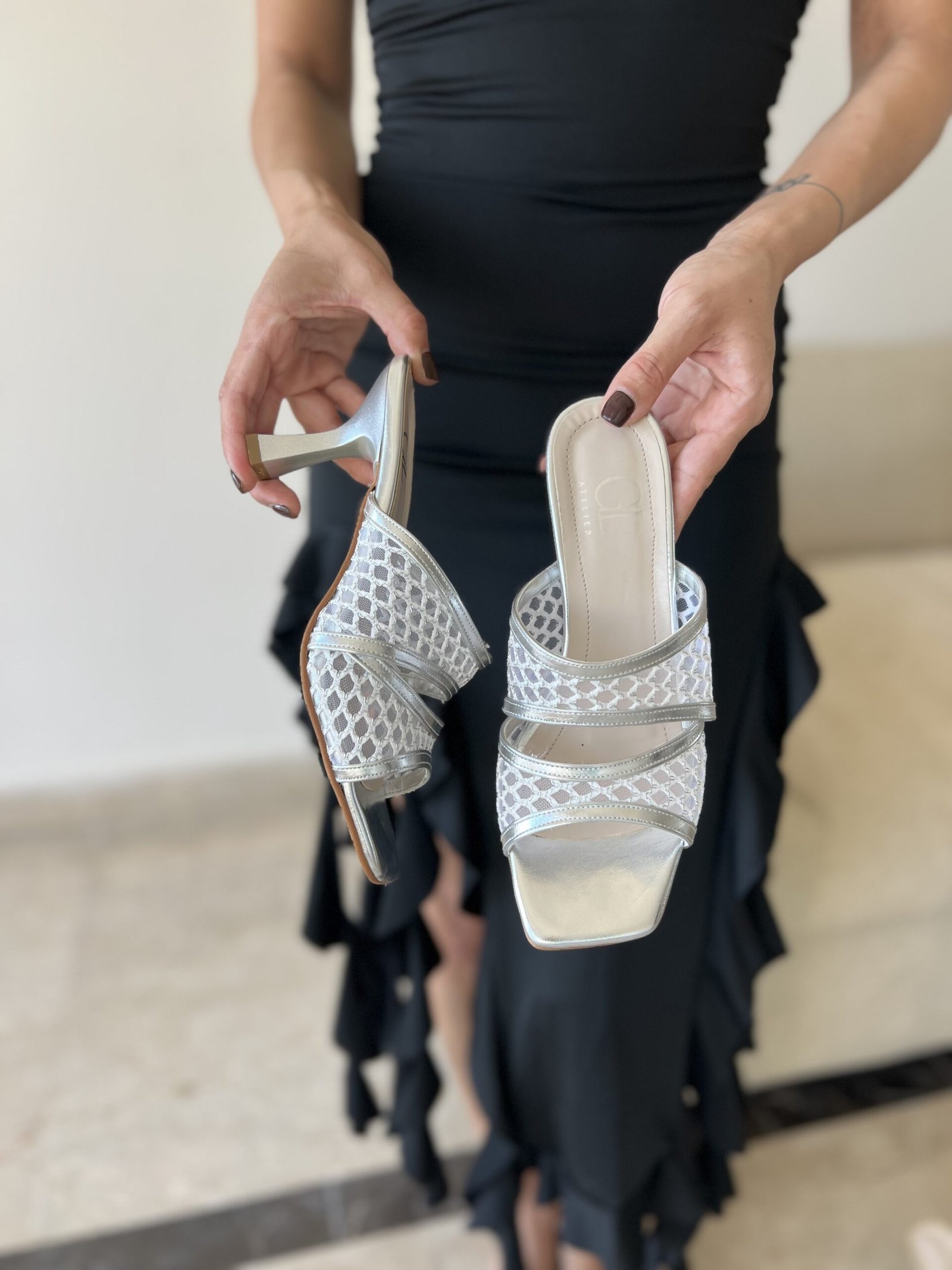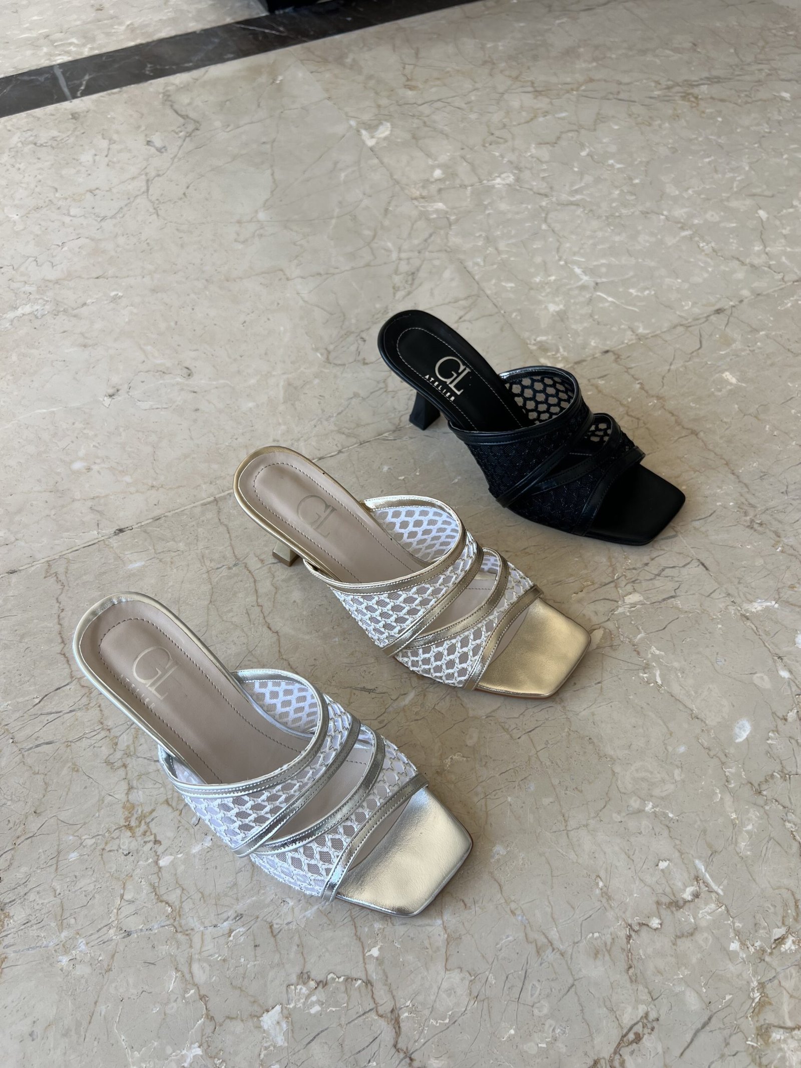 Sleek. Stylish. Statement-worthy. Our mesh-detailed slip-on heels blend modern elegance with subtle sparkle—available in white-gold, ivory, and classic black for your day-to-night transitions.