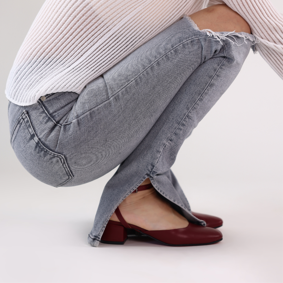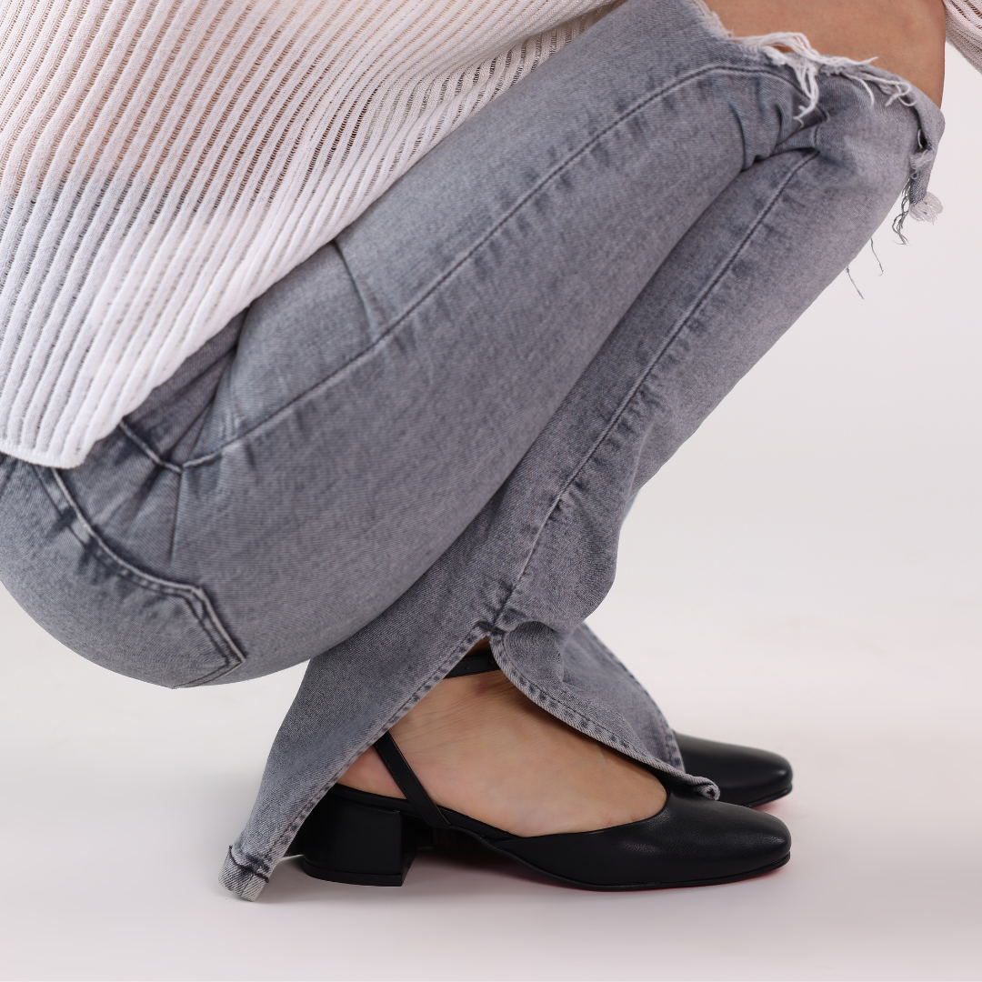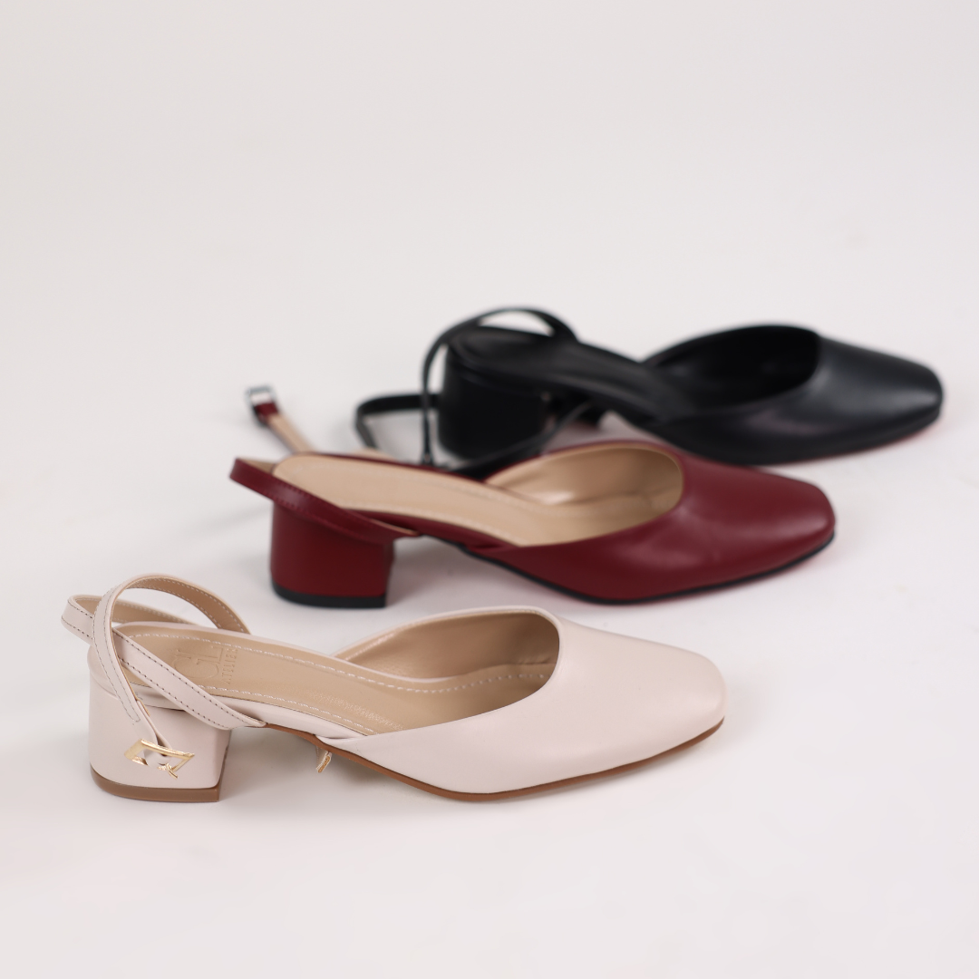 Crafted from premium smooth leather, these round-square toe slingbacks feature a slim ankle strap, soft leather lining, and a 4cm block heel for elegance and comfort. Expertly crafted, they offer a versatile, refined touch for any occasion.