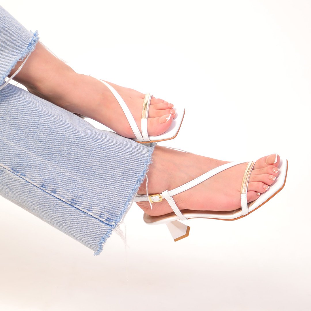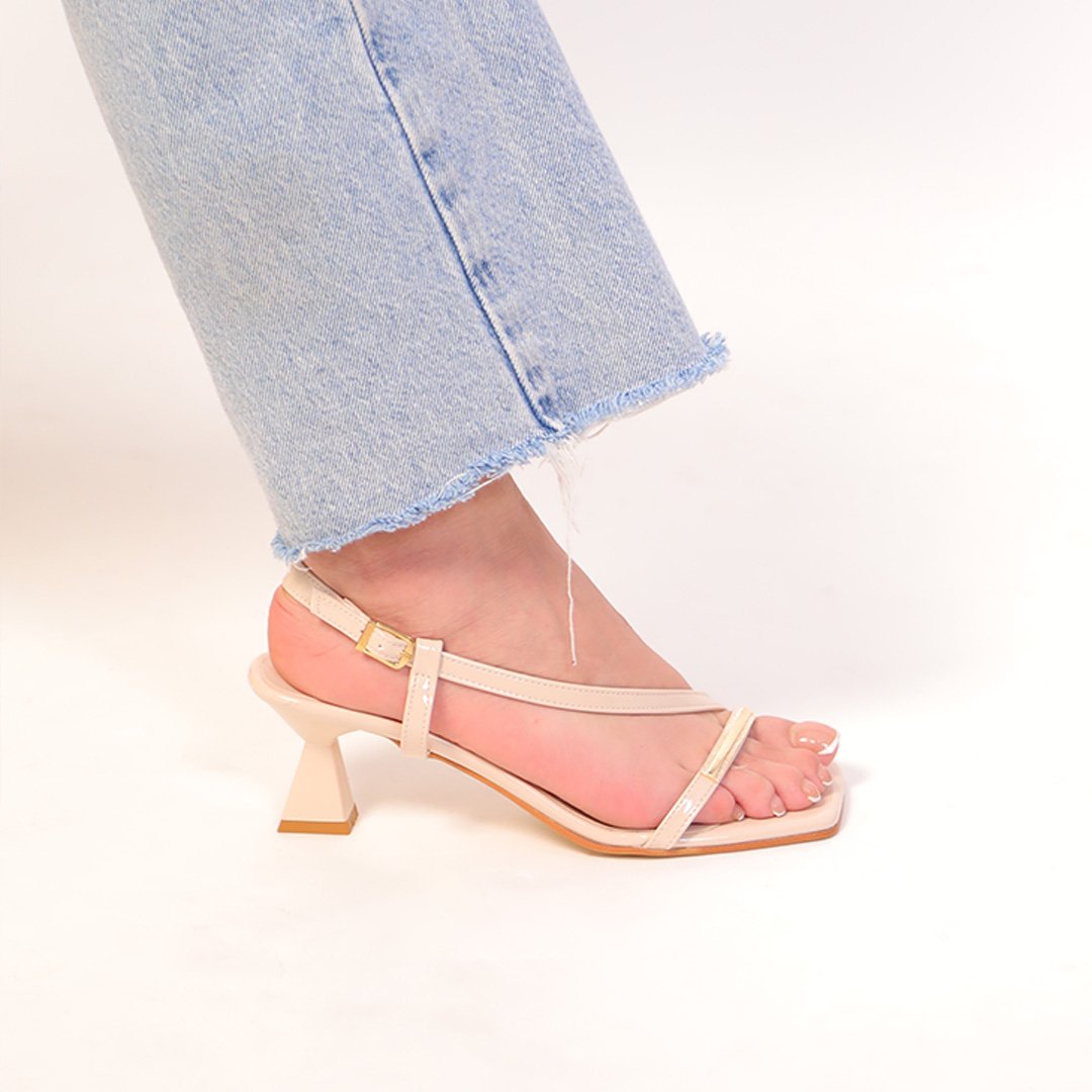 Step into summer with the stunning Nima Sandals. Featuring an eye-catching geometric heel and elegant gold detailing at the front, these sandals combine style and comfort for your warm-weather wardrobe. Perfect for a day at the beach or a night out, the Nima Sandals are your go-to choice for effortless chic.