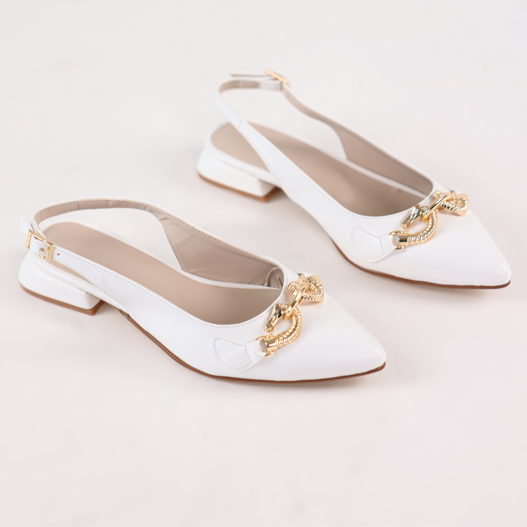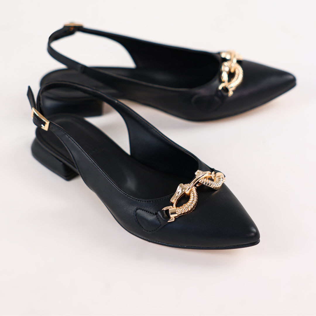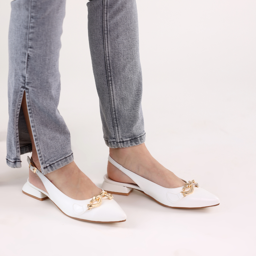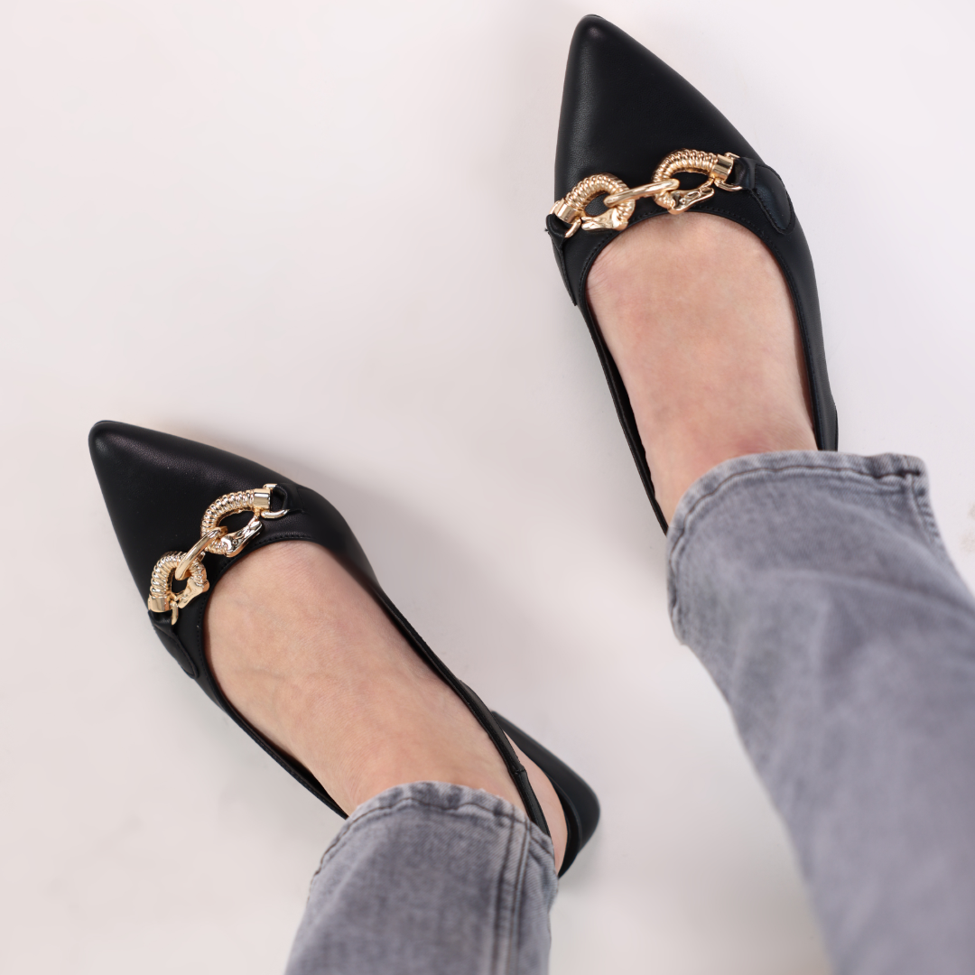 Crafted in smooth leather and finished with a sculptural gold chain detail, the Orla Slingbacks bring modern elegance to everyday dressing. Designed with a pointed toe and a sleek slingback silhouette, Orla features a comfortable 2 cm heel that adds just the right lift. The bold gold hardware brings a refined edge, making it the perfect piece to dress up or down. From office days to evening plans, Orla steps up any outfit with ease.