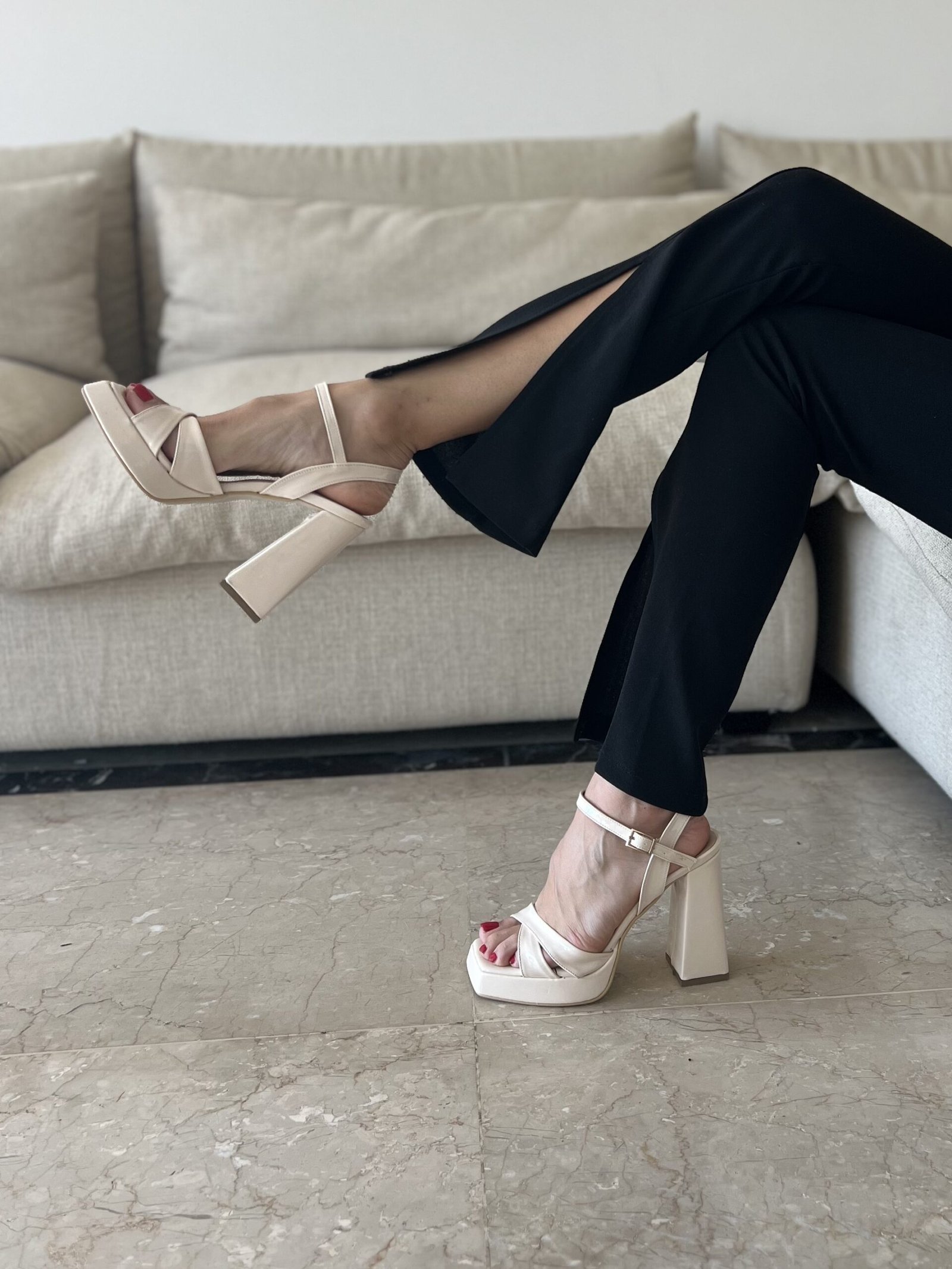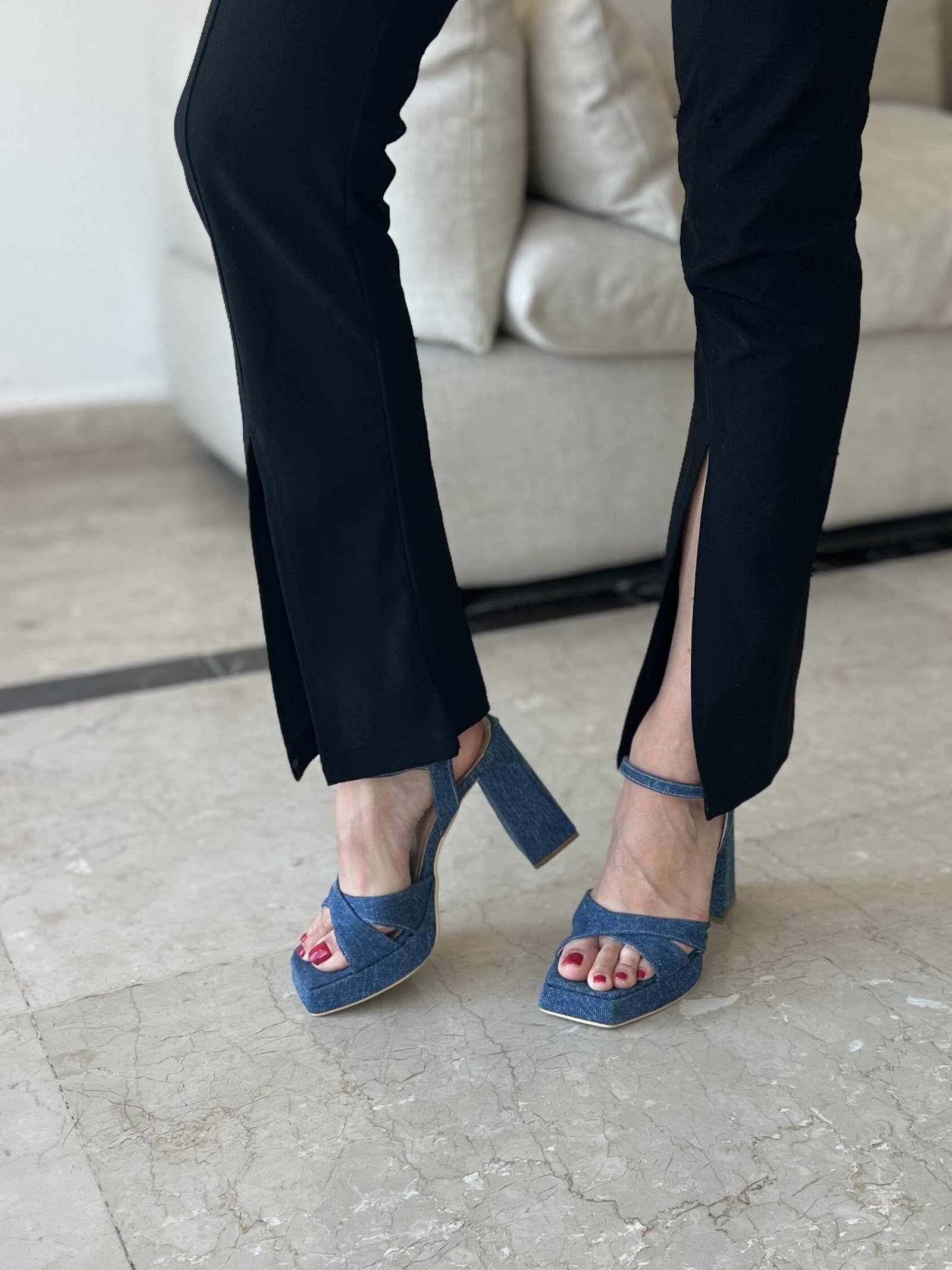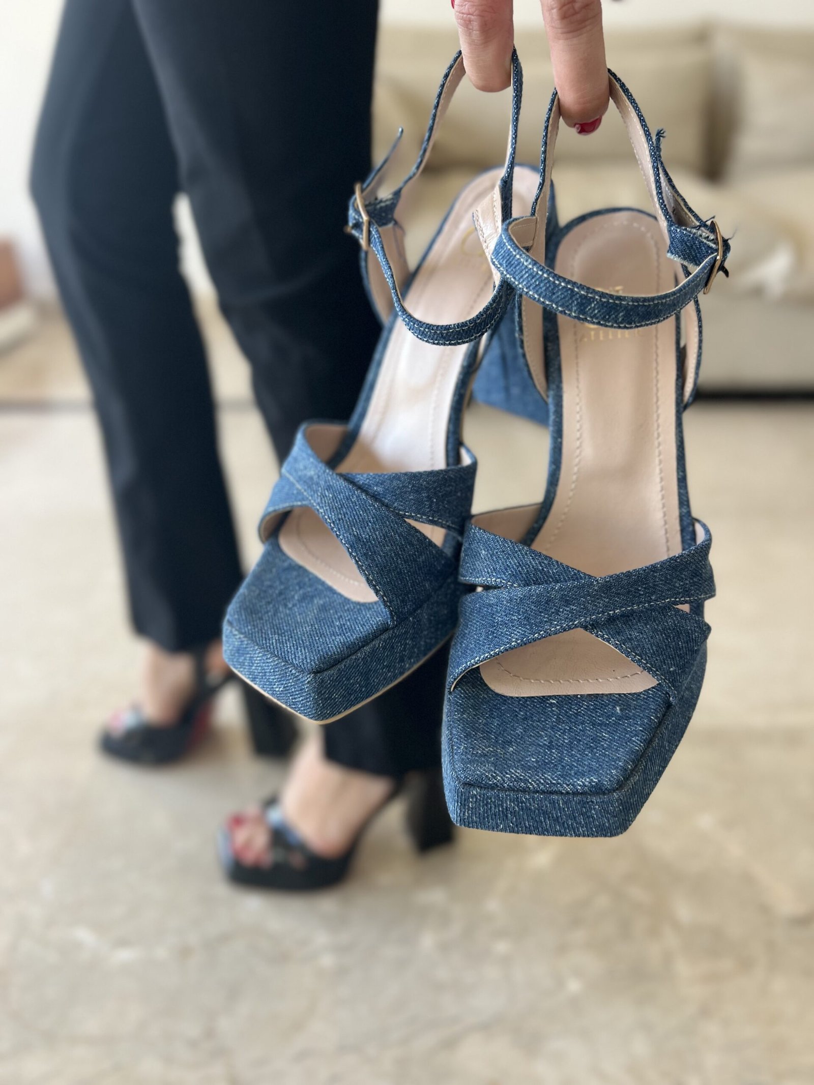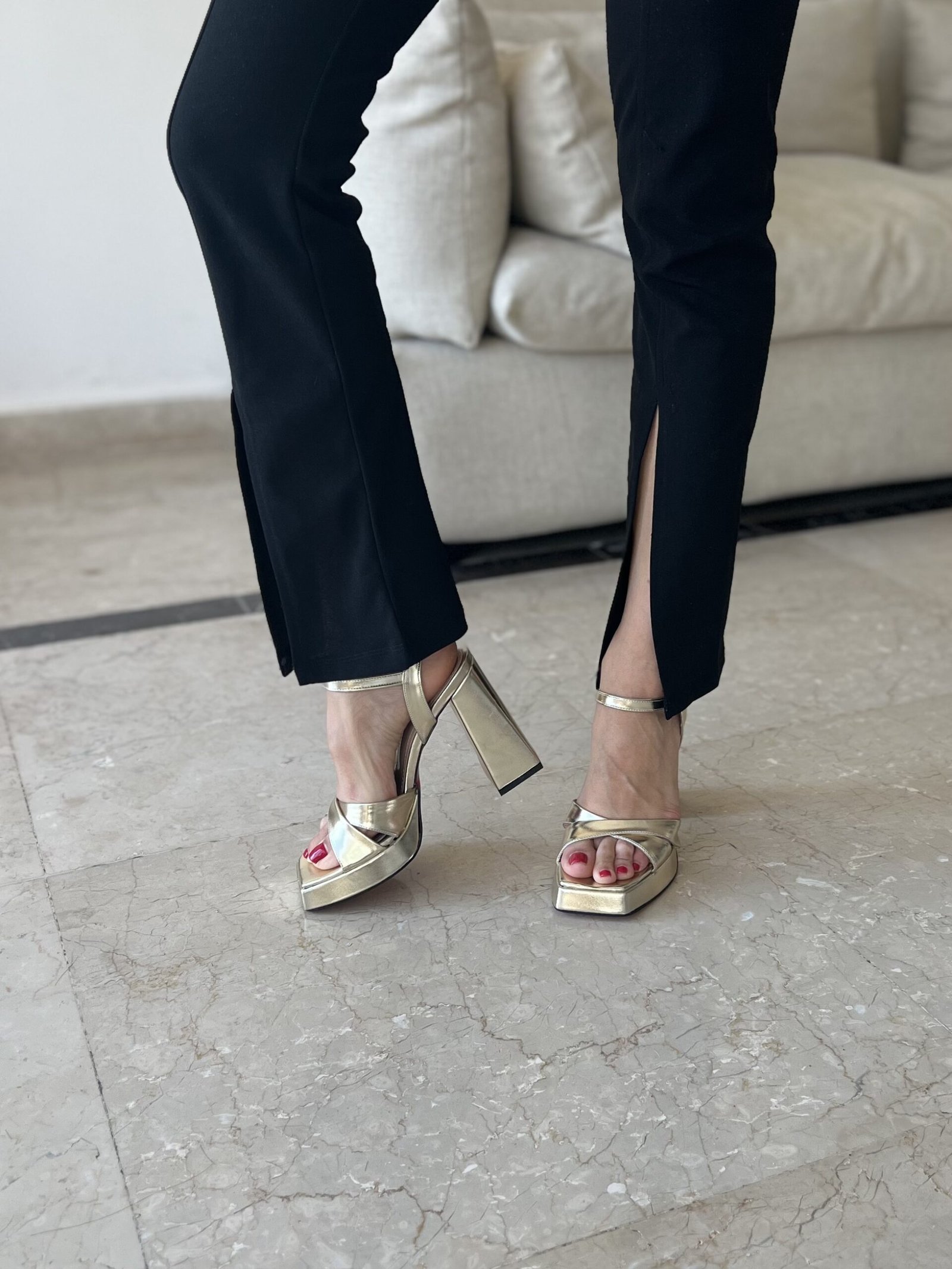 Meet your new go-to platform heels—elegant, edgy, and designed to stand out. Featuring a bold square toe and ankle strap, available in black patent, white, denim, silver, and gold. A flawless match for every outfit and occasion