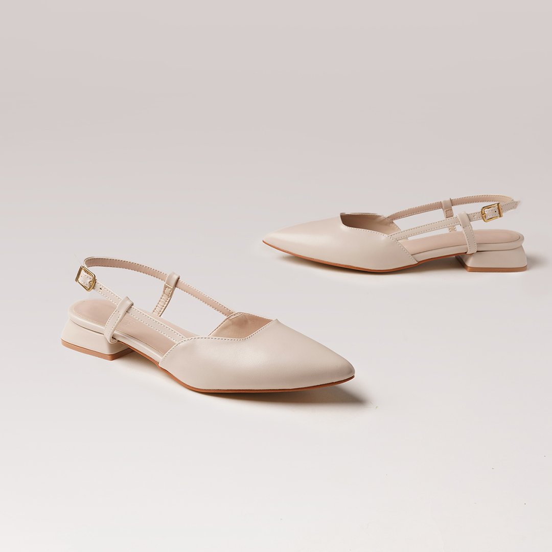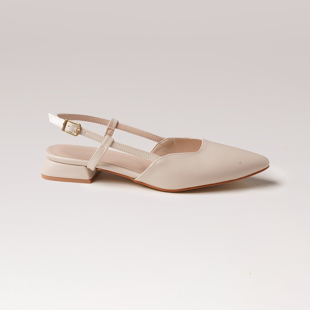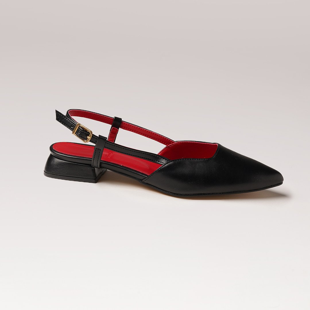 crafted from leather, shoe is ideal for both formal and casual occasions. The minimalist silhouette is complemented by a clean, streamlined design, making it a timeless addition to any wardrobe. Whether paired with a tailored suit, a skirt, or casual trousers, the low slingback offers a chic and refined look with practical comfort.