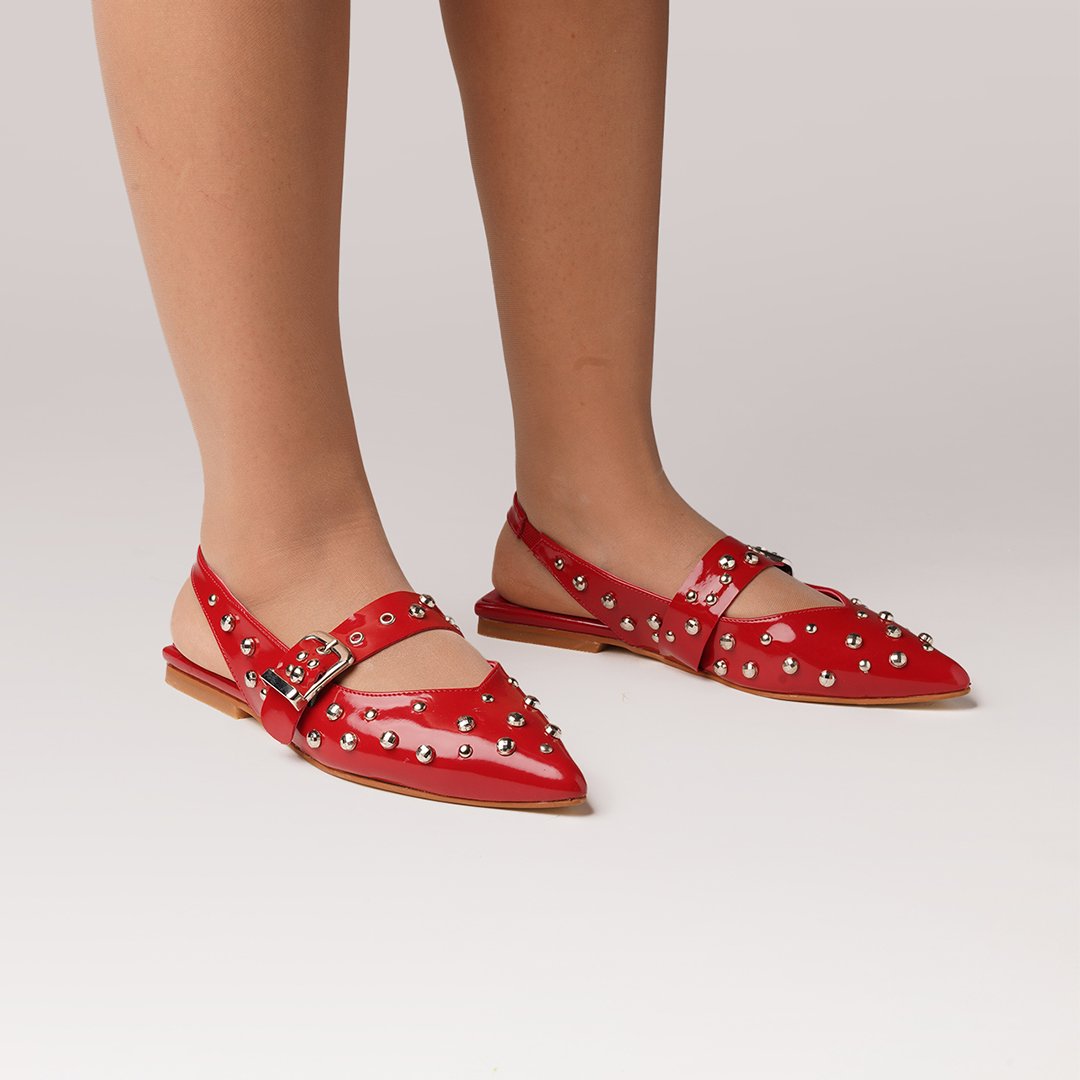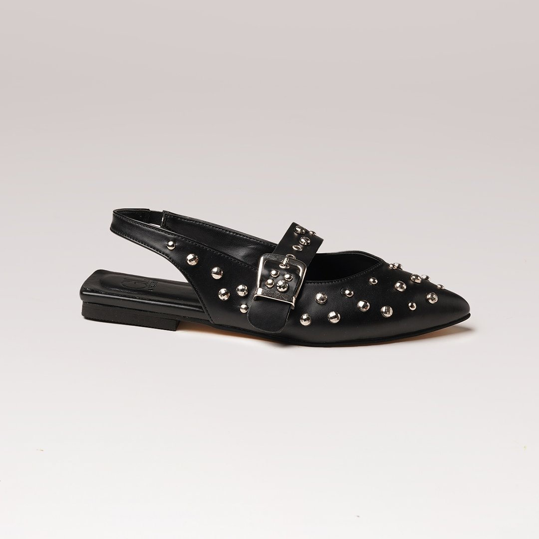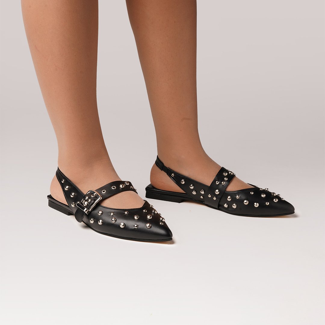 Elevate your style with our leather slingbacks, where classic elegance meets modern edge. Crafted from premium leather, these shoes feature a distinctive touch of metal spheres that add a bold, contemporary flair. The adjustable slingback strap ensures a secure fit. Perfect for making a statement at any occasion, these slingbacks are a versatile addition to your wardrobe.